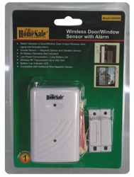This HOMESAFE WIRELESS HOME SECURITY SENSOR is a double sensor that detects vibration and when your door/window has been opened. It has a wireless radio frequency range of 300 feet. When triggered the RF signal activates the alarm. Uses one 9-volt battery (not included). Easily protect every window and door of your home.